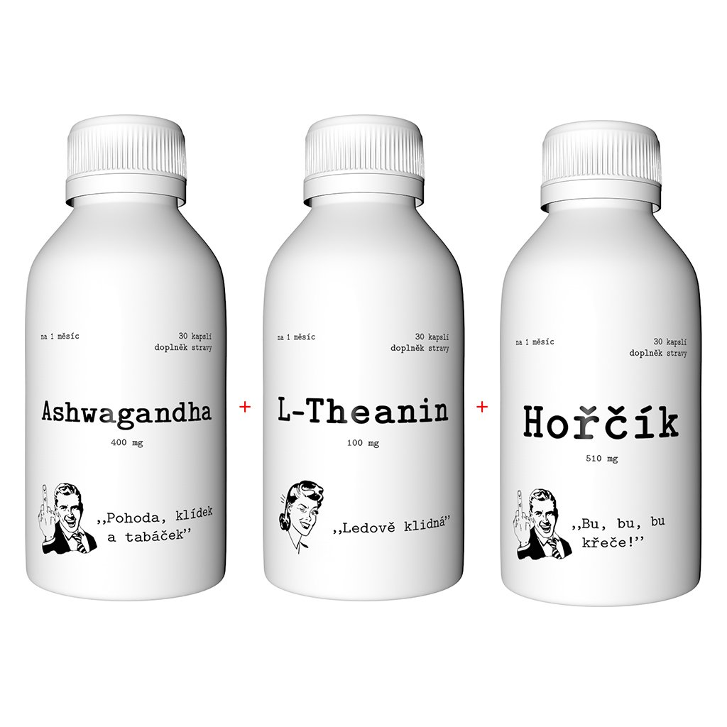 Složení: Kombinace doplňků stravy Ashwagandha, L-Theanin a Hořčík.