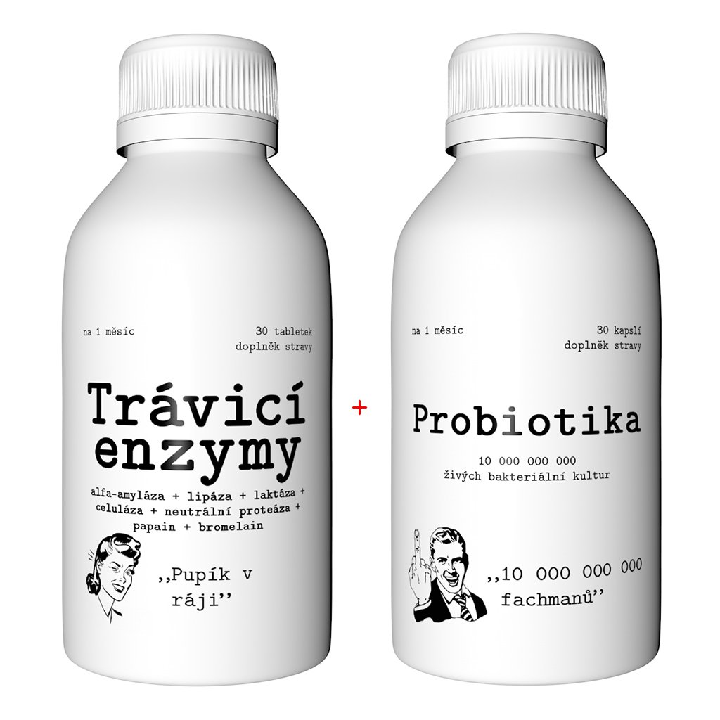 Složení: Kombinace doplňků stravy Trávicí enzymy a Probiotika + prebiotika.