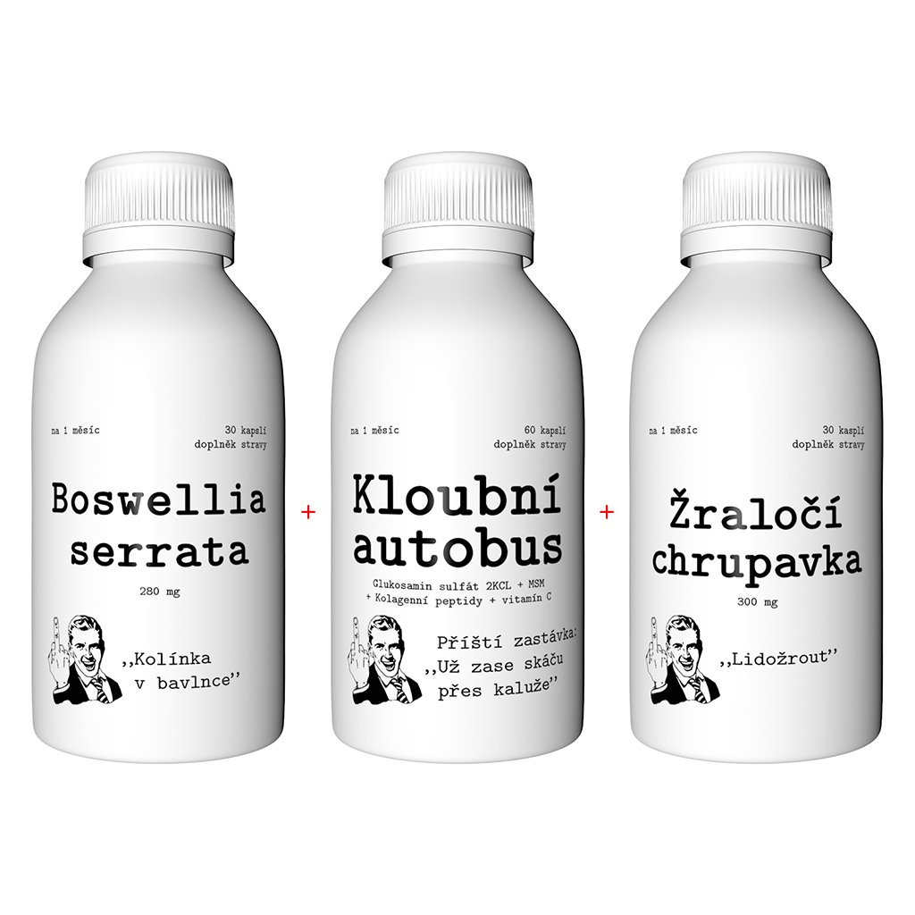 Složení: Kombinace doplňků stravy Kloubní autobus, Boswellia serrata a Žraločí chrupavka.