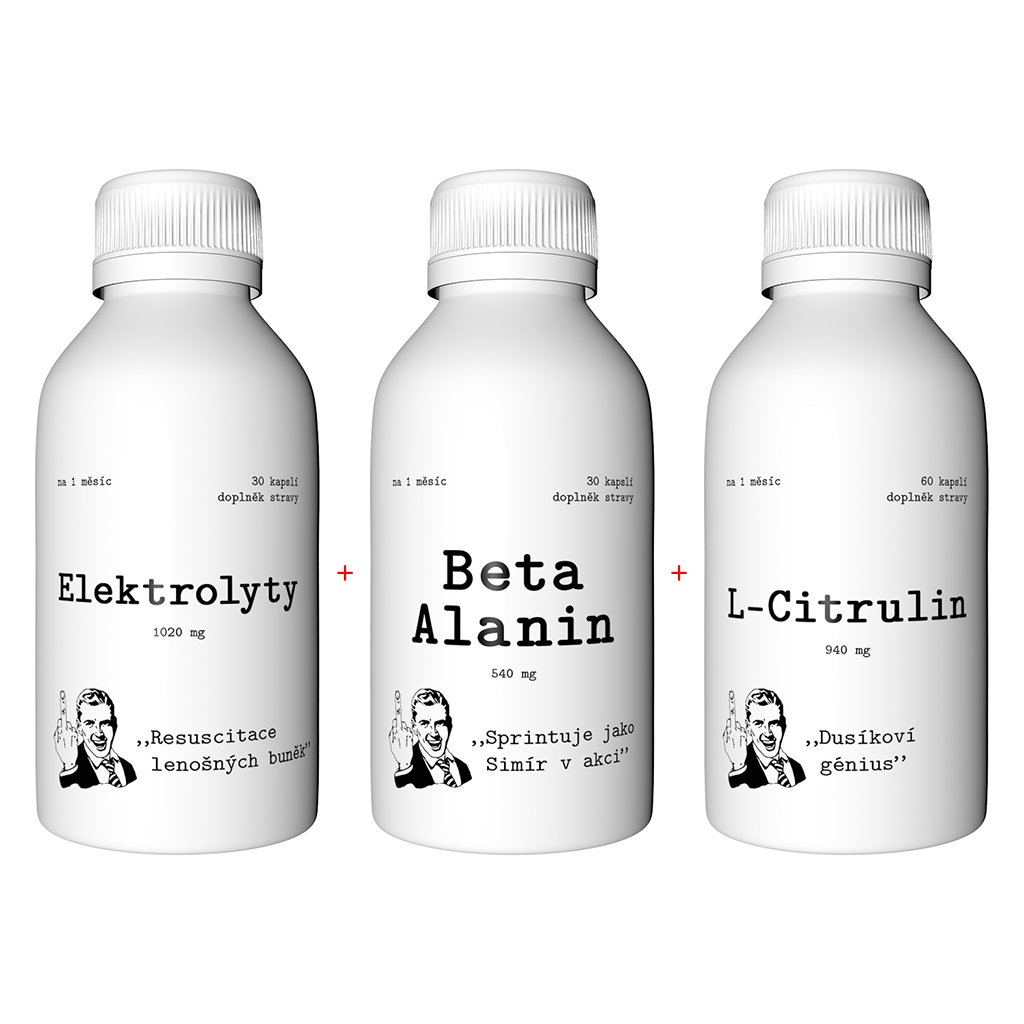 Tenhle balíček je pro všechny, kdo jedou delší tréninky, kondici, kruháče, běh, kolo… nebo prostě cokoliv, kde se nechceš po 20 minutách složit. Máš tu hydrataci/minerály + dvě věci kolem výkonu, které se hodí, když chceš držet tempo.